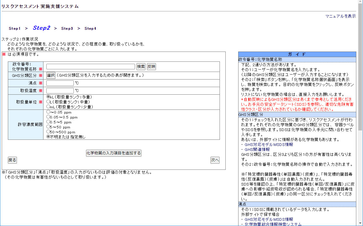 STEP2取扱い物質に関する情報を入力