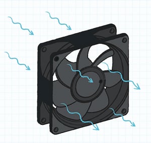 ・軸流式ファンは、プロペラファンと呼ばれることもあり、モータで駆動する回転軸(またはシャフト)に斜めに取り付けられた羽根を特長としています。軸流式ファンは、一方の端から空気を吸い込み、もう一方の端から軸と平行な方向に強制的に押し出すことで動作します