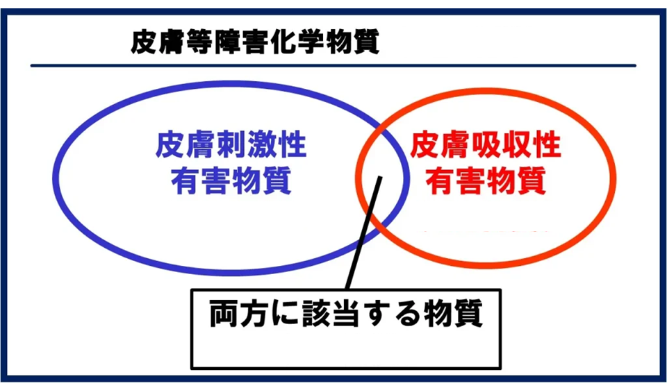 →「皮膚等障害化学物質」=「皮膚刺激性有害物質」+「皮膚吸収性有害物質」