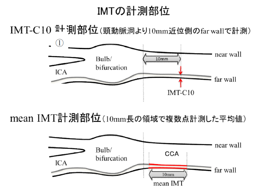 ・内膜中膜複合体(IMT)の正常は1.0mm以下である。