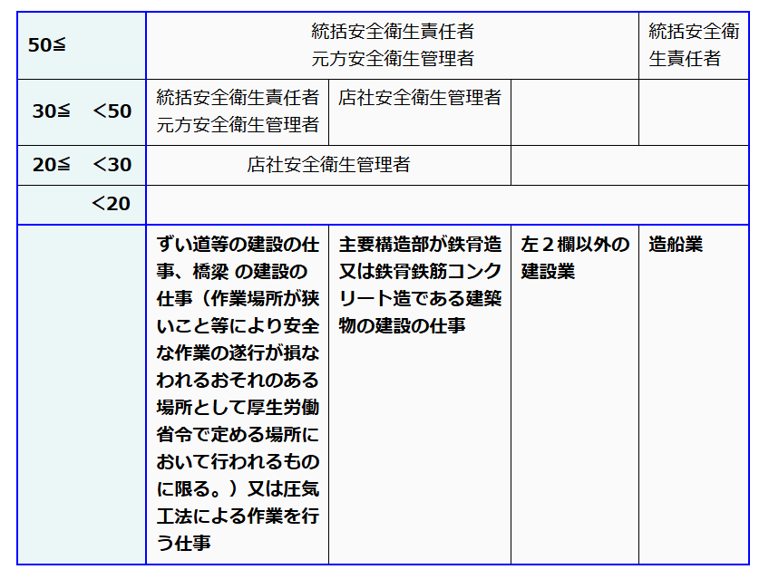 ・また「より危険な建設作業」(ずい道等の建設の仕事、圧気工法(建設業)による作業を行う仕事、一定の橋梁の建設の仕事)では30人以上で選出が必要です。