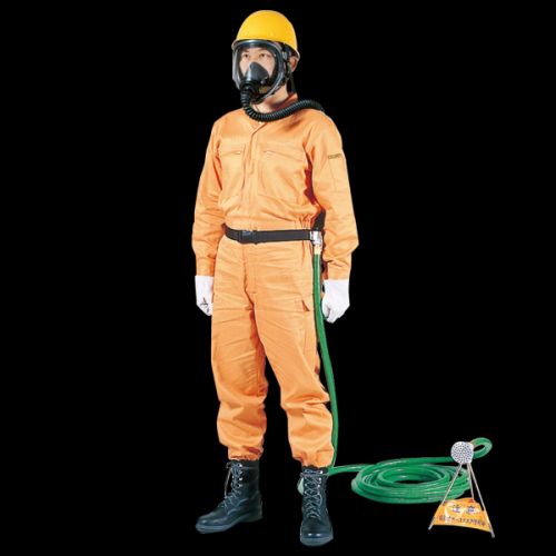 ・送気マスクは、電動送風機で清浄な空気を有害な環境以外からパイプ、ホース等により作業者に給気する呼吸用保護具である。