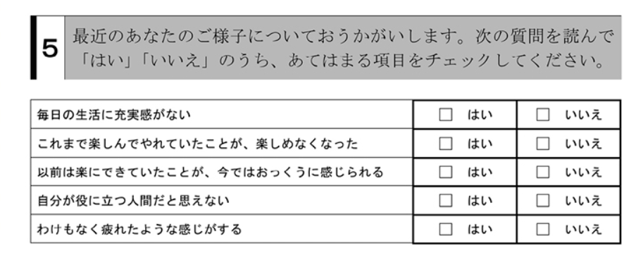 ・両方とも「いいえ」の場合、以下のA3からA5までの質問については省略してよい(うつ病等の可能性はなし)