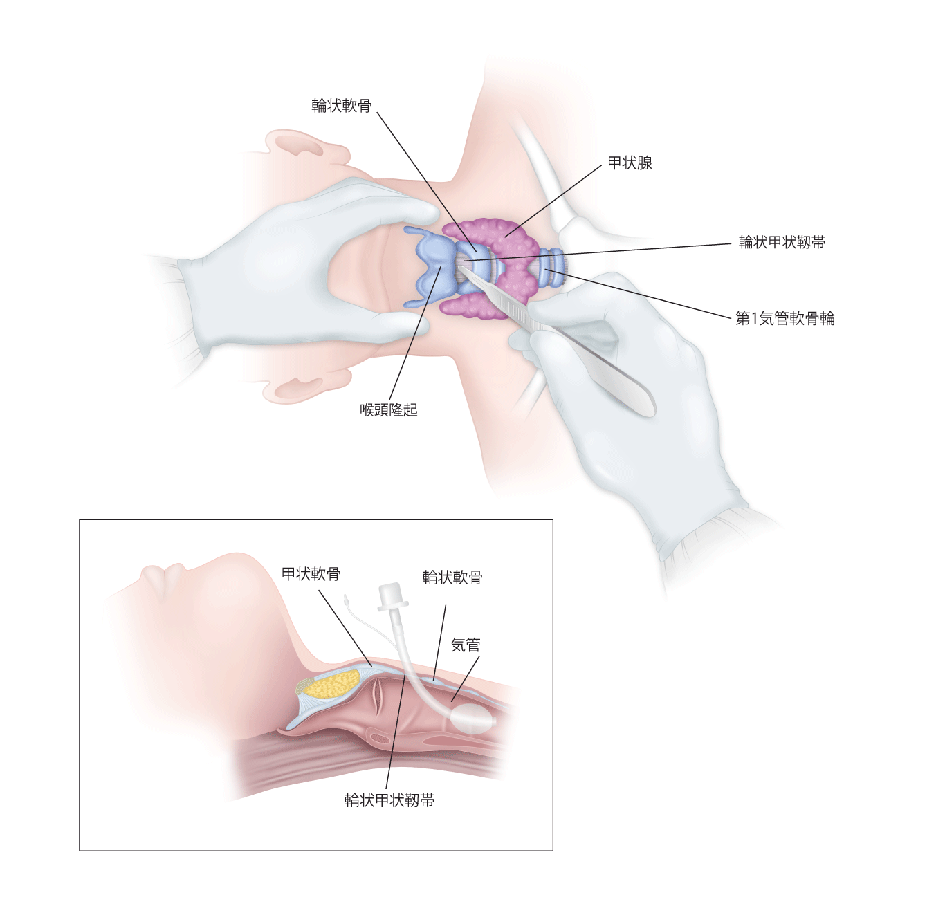 外科的気道確保-病因、病理生理学、症状、徴候、診断および予後についてはMSDマニュアル-プロフェッショナル版へ。